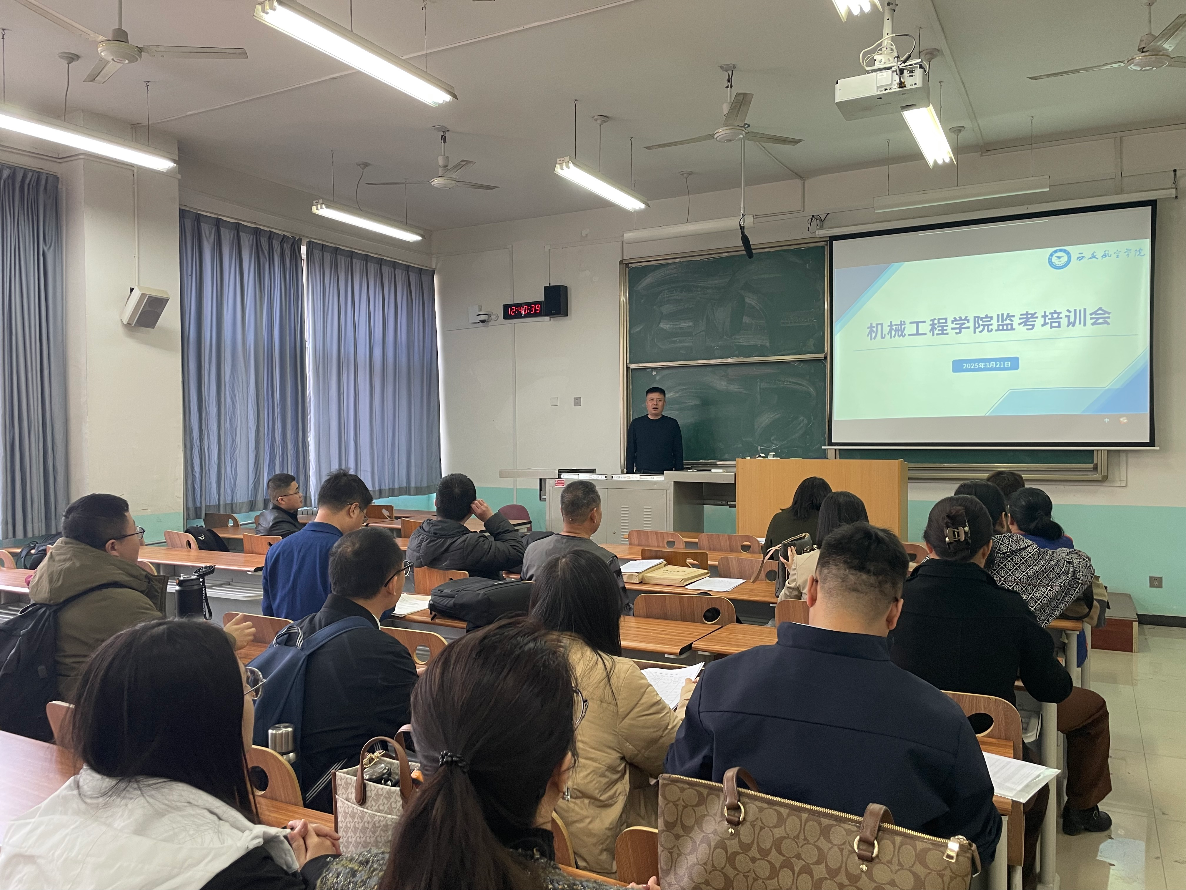 教学副院长李懿结合学校《beat365英国官网网站课程考核管理办法》、《beat365英国官网网站监考巡考补充办法》等文件,重点培训考场标准化管理流程,要求考前严格执行考场清理程序,运用金属探测仪对电子设备进行二次筛查;考中规范执行试卷启封、身份核验、考场巡查等多项标准化操作;考后完善违纪行为“认定—取证—处置—归档”闭环管理体系。