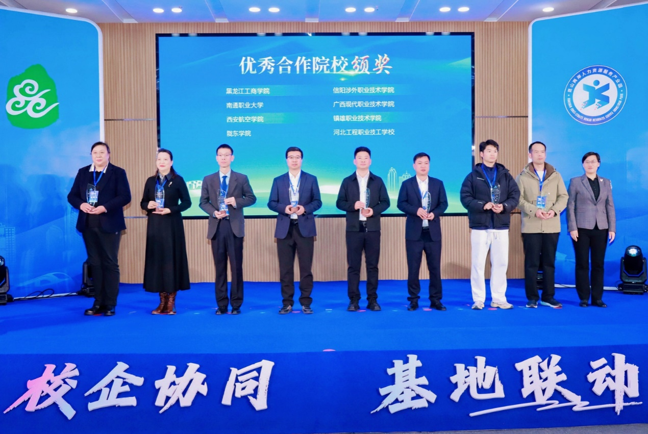 活动第二阶段,昆山市人力资源和社会保障局领导致欢迎词、回顾了校企合作历程、总结了合作成果,并为beat365英国官网网站等15所高校颁发了2024年度优秀合作院校奖杯。立讯集团、昆山丘钛微电子等企业代表上台进行了企业宣传并对合作院校表示了感谢。昆山市重点企业与院校共建产业学院举行了签约仪式。