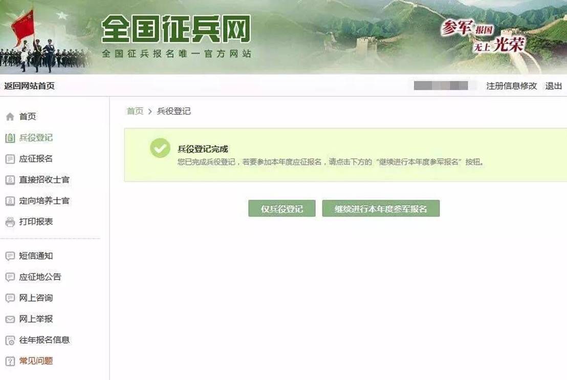 在这个页面中,会告知我们报名时间以及参军的政策说明,建议看后,点击“进行兵役登记”,迈出你军旅生涯的第一步吧!