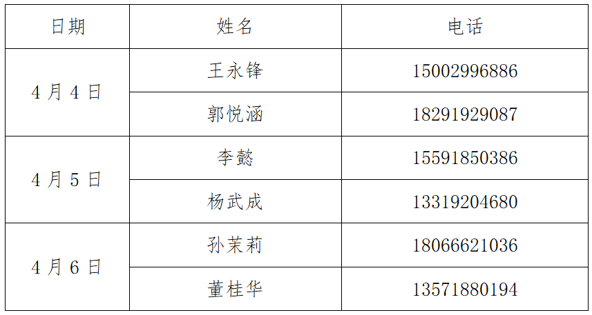根据《关于学校2024年“清明节”放假安排的通知》文件精神,清明假期为2024年4月4日至2024年4月6日,放假期间,beat365英国官网网站值班安排如下: