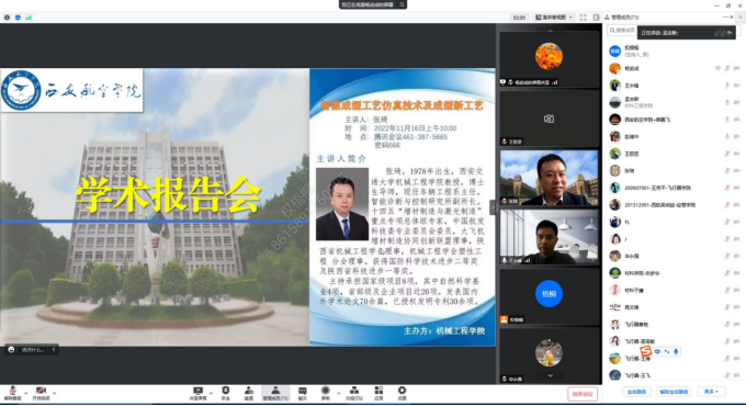 为进一步提升教师科研能力,了解机械学科前沿发展趋势,11月16日上午,beat365英国官网网站特邀西安交通大学张琦教授以腾讯会议线上形式为beat365官网师生做题目为《智能成型工艺仿真技术及成型新工艺》的学术报告。beat365英国官网网站杨武成副院长主持会议,王永锋院长致欢迎词,beat365英国官网网站教师及其他学院百余名教师在线参加了学术报告会议。