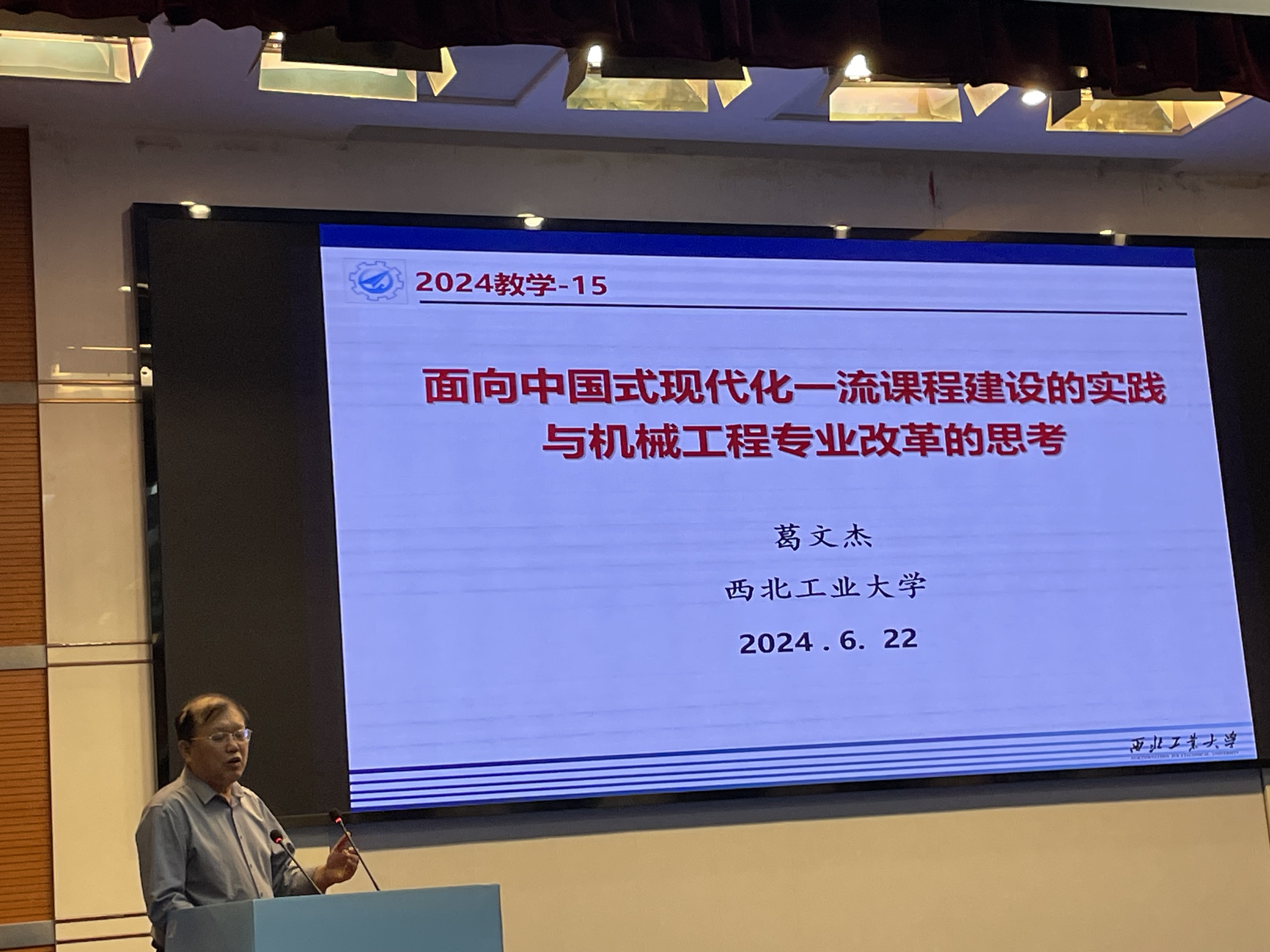 葛文杰教授做了题为“面向中国式现代化一流课程建设的实践与机械工程专业改革的思考”的主题报告,围绕新时代高等教育的变革与“四新”建设、新时代一流课程的内涵和课程建设的传承与创新实践展开介绍,交流了高等工程教育改革的OBE理念和CDIO理念,以及“机械原理”教材与课程建设的历史沿革、创新实践经验,引起了与会人员的共鸣。