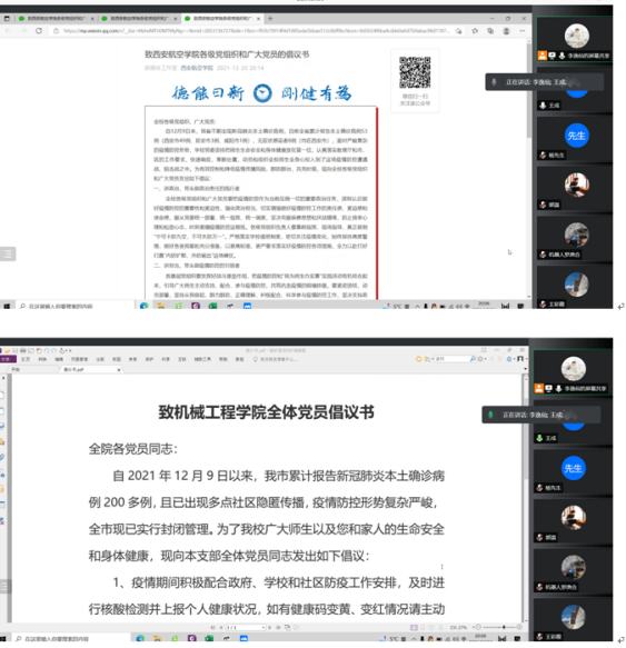 为有效控制和降低疫情传播风险,群防群治,共克时艰,beat365英国官网网站各党支部为动员支部全体党员在关键时刻要发挥示范引领作用,把学史力行真正做到实处,落实在防疫的各个方面,于12月25日分别举行线上“抗击疫情,奉献有我”主题党日活动。