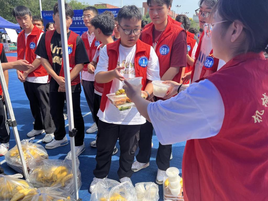 招聘会期间,志愿者们身穿红色马甲,忙碌的身影穿梭在各个角落,成为西航一道靓丽的风景线。他们吃苦耐劳、尽职尽责、热情服务,充分展现了“奉献,友爱,互助,进步”的志愿服务精神,得到了用人单位的高度赞扬,提升了beat365英国官网网站服务社会的良好形象。学校也贴心为企业及志愿者们提供爱心盒饭,包含水果及饮料、矿泉水,给志愿者们补充体力,稍作休整为接下来的工作加油蓄力。