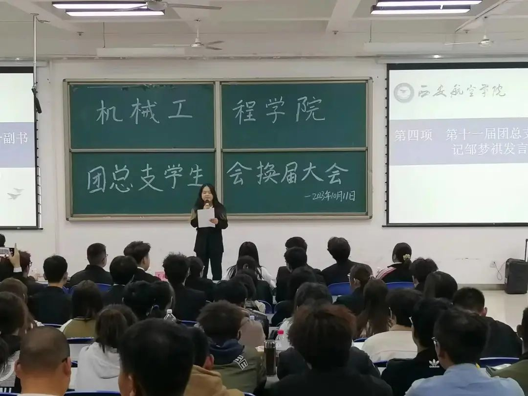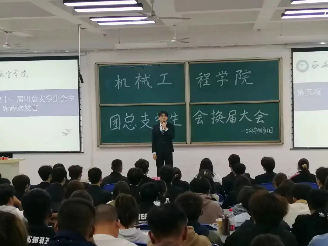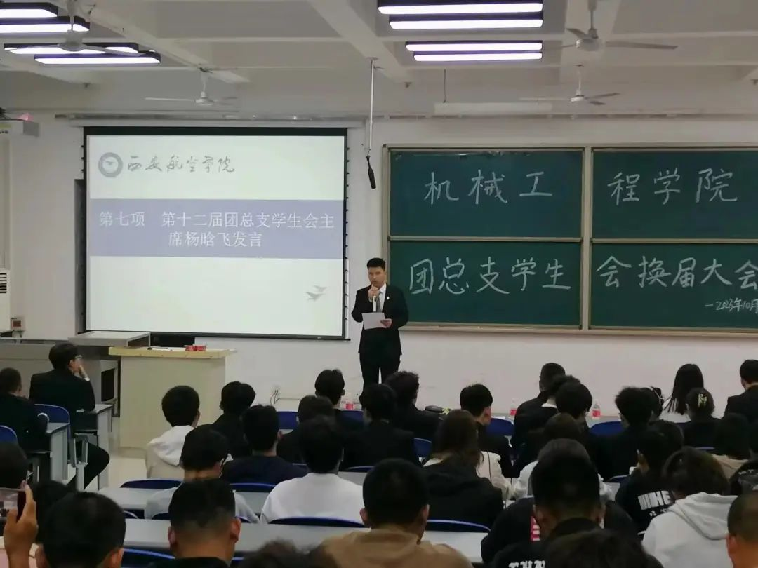 第十二届团总支学生会主席杨晗飞为新生提出要求,并对老师表示感谢,相信在未来的日子里,团总支学生会会因为每一个人的努力而变得更加美丽,更加值得同学们信赖。