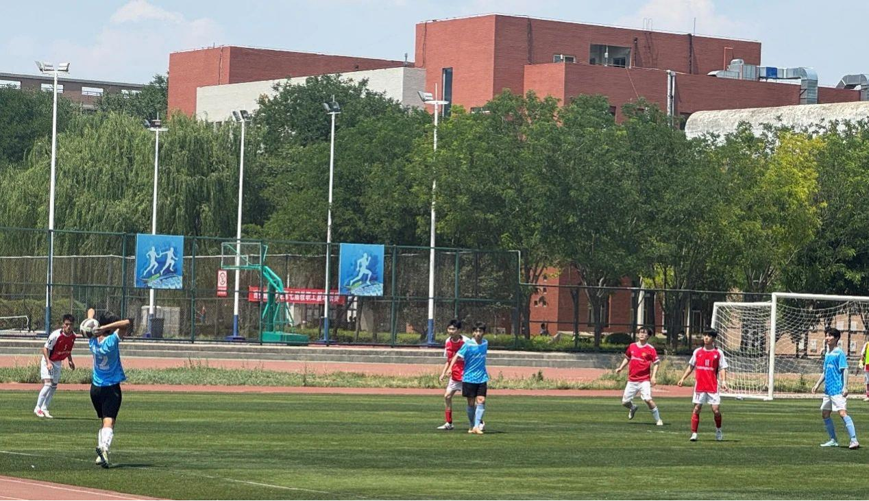 随着哨声的响起,决赛正式开始。此时,这片绿茵承载的不仅是他们挥洒的汗水,更是顽强拼搏的精神。不论是呐喊的观众,还是驰骋的健儿,都在为这场校庆之赛添上更好的姿色。在这炎炎夏日,运动健儿们没有丝毫的退缩,反而点燃了他们心中的激情,迸发出更加坚毅顽强的精神。哨声响起,上半场结束,比分定格在0:0。双方攻防转换激烈,每一次奋力争顶的头球都让悬念加剧,每一次关键的封堵解围都彰显着永不放弃的信念。门前风声鹤唳的瞬间,总能引爆全场更疯狂的呐喊,这正是“飞豹杯”的魅力所在。
